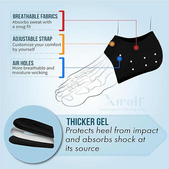 • Instant Comfort: Soft silicone gel absorbs shock and reduces pressure on heels.